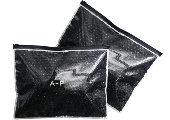 黑色气泡袋的主体由两层材料复合而成:外层通常为黑色EVA或珠光膜,内层为含空气的气泡膜。EVA材质具有柔韧性高、耐穿刺的特点,而珠光膜则通过表面镀层提升光泽度与抗撕裂性能。气泡膜的气泡直径与密度直接影响缓冲效果,常见规格中,气泡直径约10毫米,每平方米分布数百个气泡,形成立体防护层。热切工艺使袋口边缘平整,减少毛刺,拉链式设计则方便重复开合。
